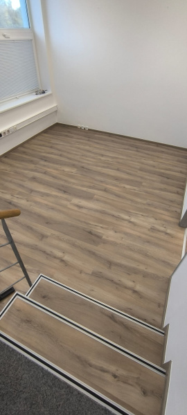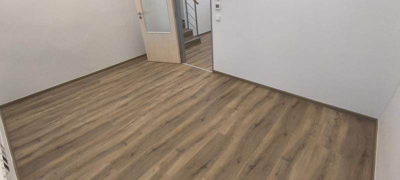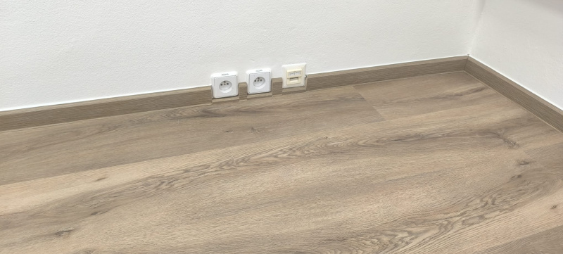 Am ales vinilul SPC Click în decorul rustic Country. Acest material combină aspectul autentic al lemnului cu un miez rigid extrem de dur, care rezistă la presiune chiar și sub sarcina punctuală a mobilierului greu sau a echipamentelor. Sistemul Click fără utilizarea adezivului ne-a permis o instalare rapidă, datorită căreia spațiul a putut fi predat imediat după finalizare pentru testare în condiții reale de utilizare.