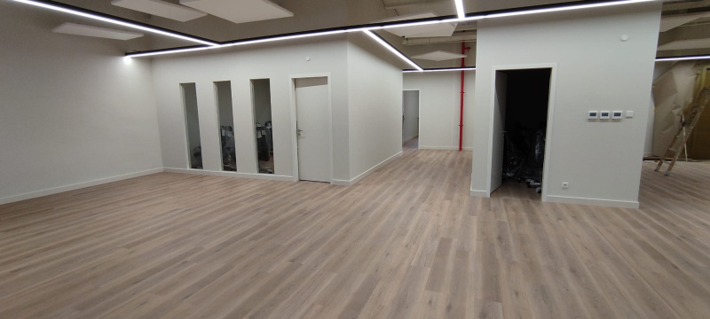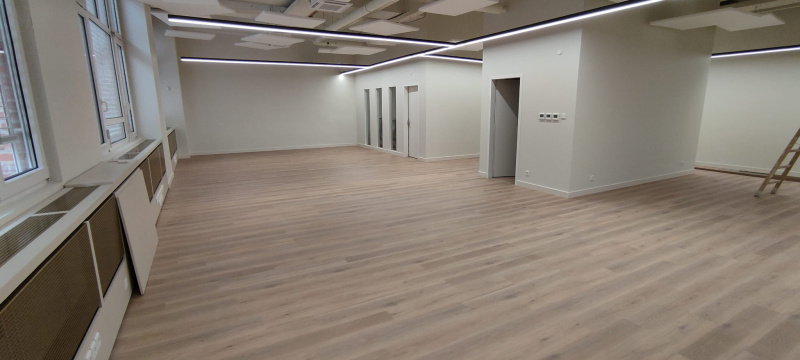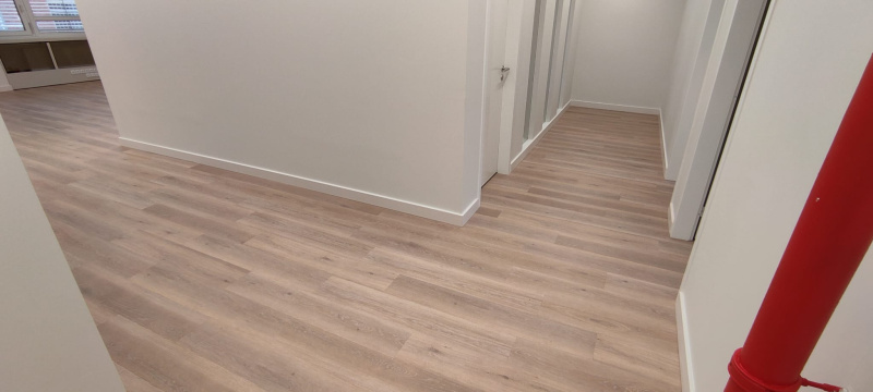 Pentru acest proiect, cheia a fost alegerea vinilului SPC cu miez rigid. În spațiile mari deschise apare o uzură pronunțată, motiv pentru care am mizat pe un material cu stabilitate dimensională ridicată, care nu se deformează nici la variații de temperatură. Decorul Latte a conectat vizual spațiul, iar datorită izolației integrate, am obținut o reducere semnificativă a zgomotului, ceea ce este absolut esențial într-un mediu openspace.